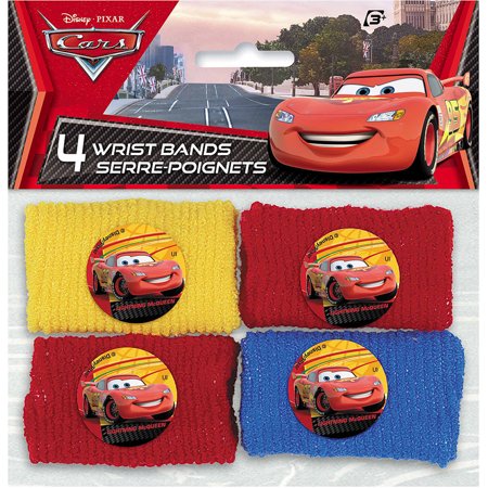 Disney Cars Wristband Party Favors, 4ct: Package of 4 Disney Cars Wrist BandsIncludes 2 red, 1 yellow and 1 blue wrist band printed with an image of Lightning McQueenMake great party favors or party game prizes for your Disney Cars birthday partyStay cool in style exercising or playing your favorite sports with these Disney Cars SweatbandsCoordinate with other Disney Cars party decorations and party supplies